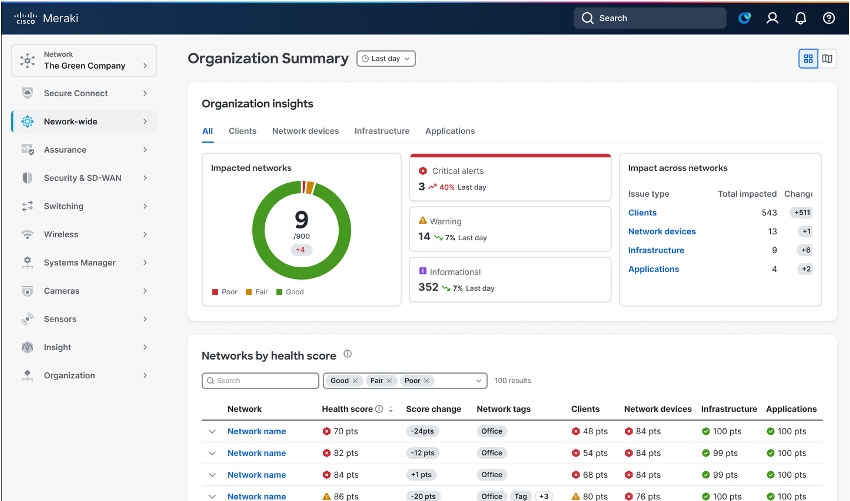 Gérez le Wi-Fi, la commutation, le routage, les passerelles cellulaires, les caméras, les capteurs ainsi que la commutation Ethernet industrielle depuis un tableau de bord unique dans le cloud offrant une visibilité unifiée sur l'ensemble de vos réseaux.
